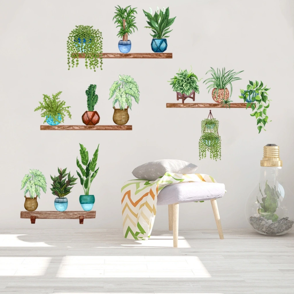 • Raflı Saksılı Çiçek Tasarımlı Yapışkanlı Sticker