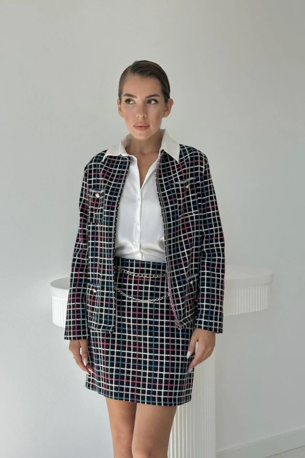 Siyah Önü Açık Ceket Ve Eteği Zincirli Takım