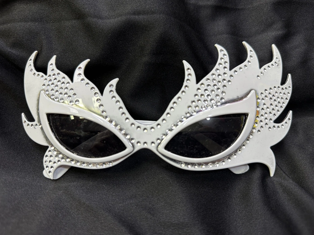 Alev formundaki çerçevesi, ışıltılı taş detayları ve özgün tasarımıyla bu gözlük; maskeli balolardan konsept partilere, gece eğlencelerinden sahne şovlarına kadar her ortamda fark oluşturur.