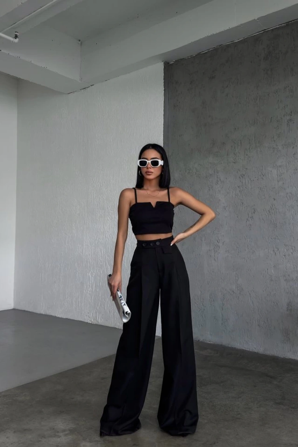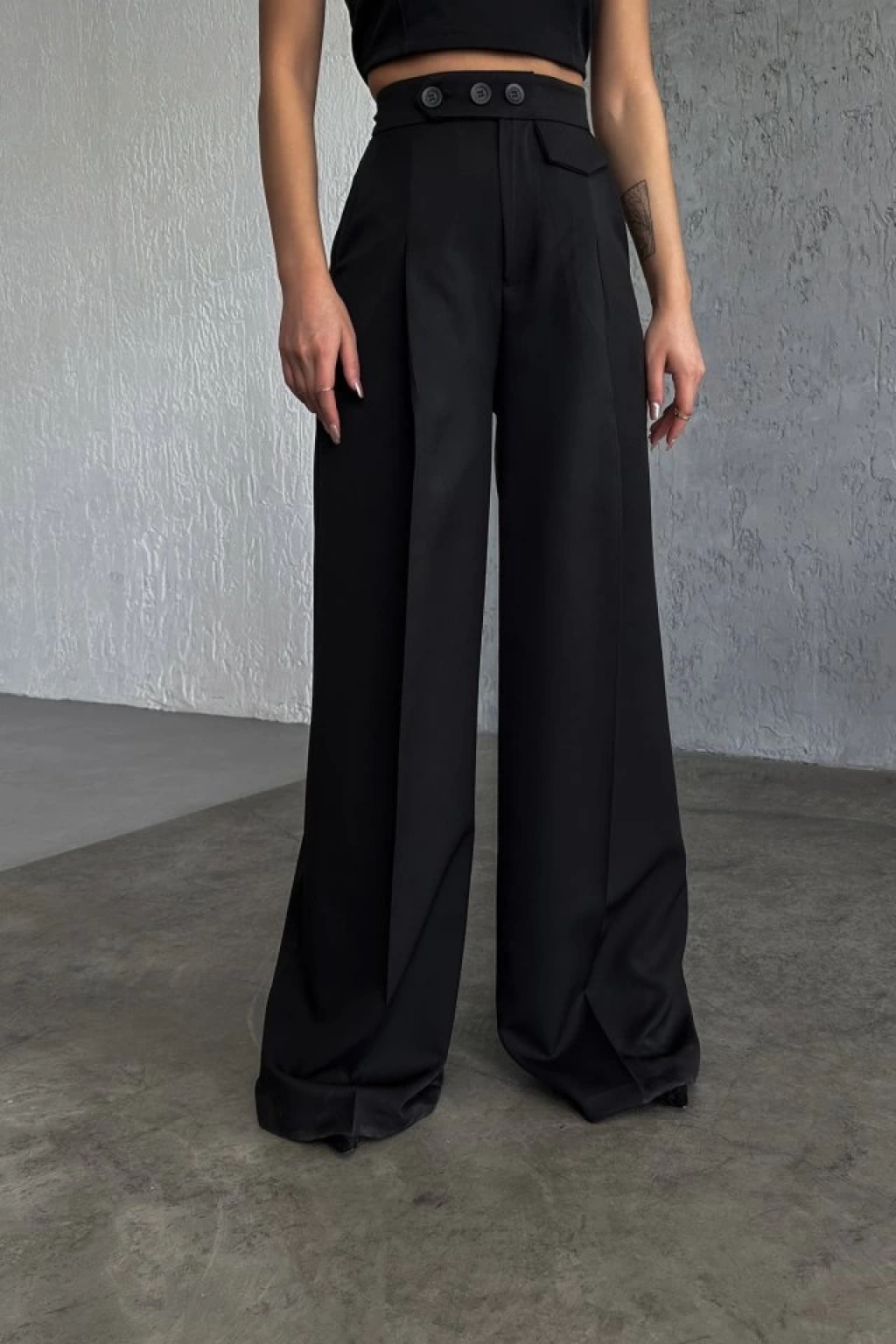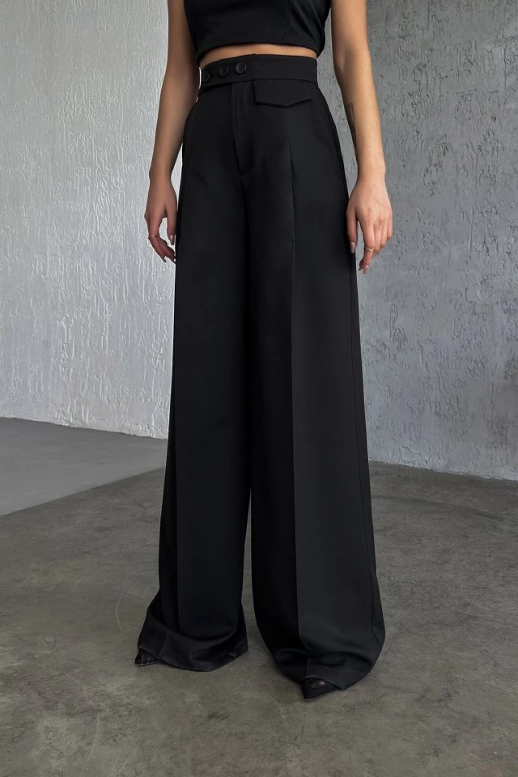 Üç Düğme Detayli Palazzo Pantolon