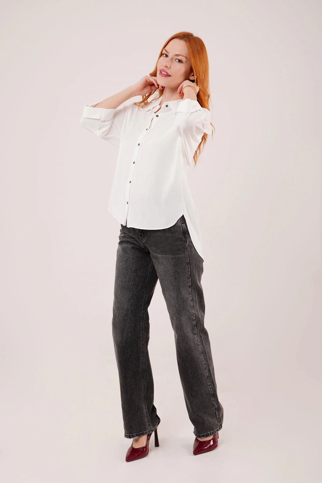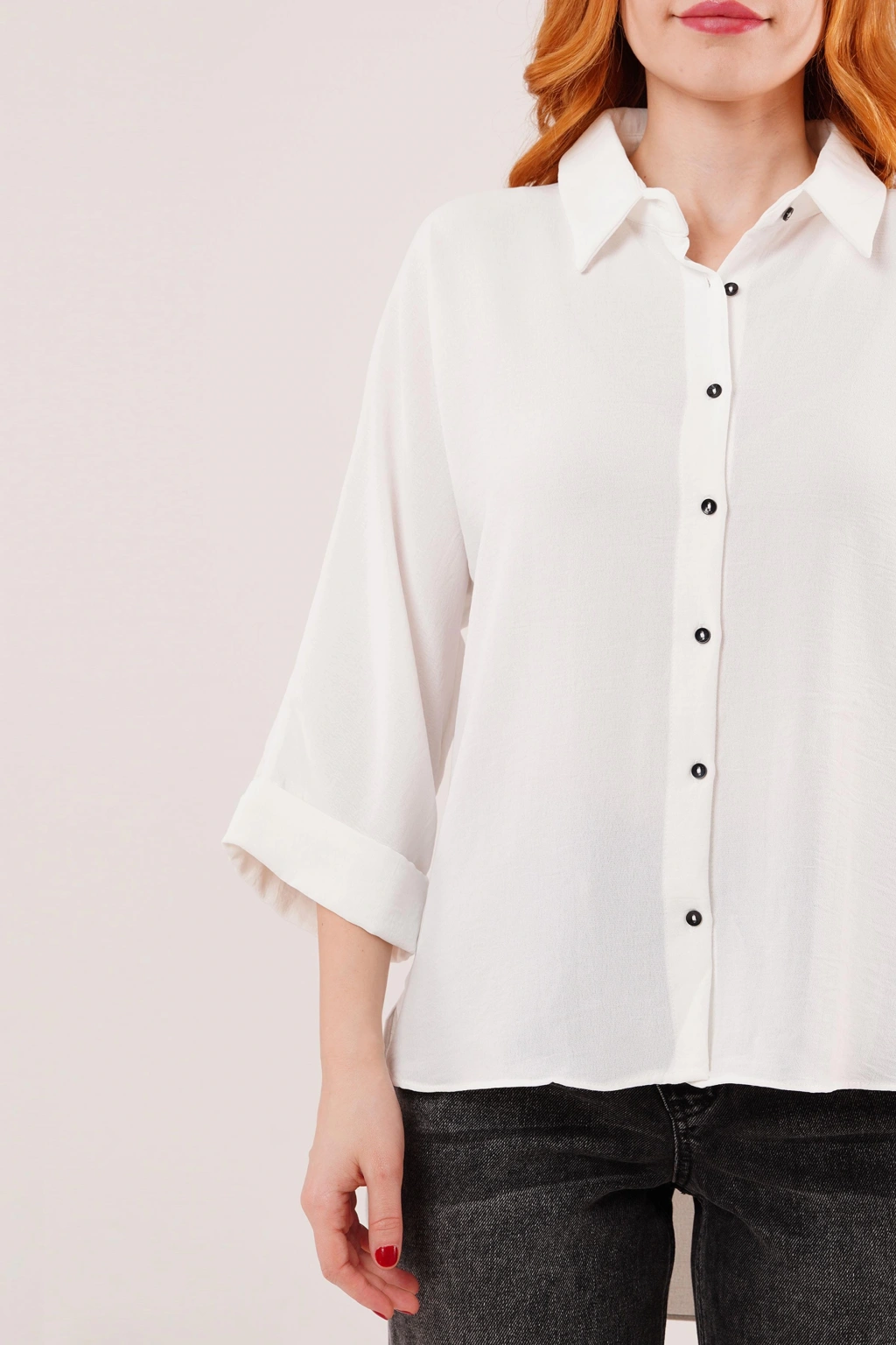 Yarasa Kol Rahat Kalıp Beyaz Gömlek