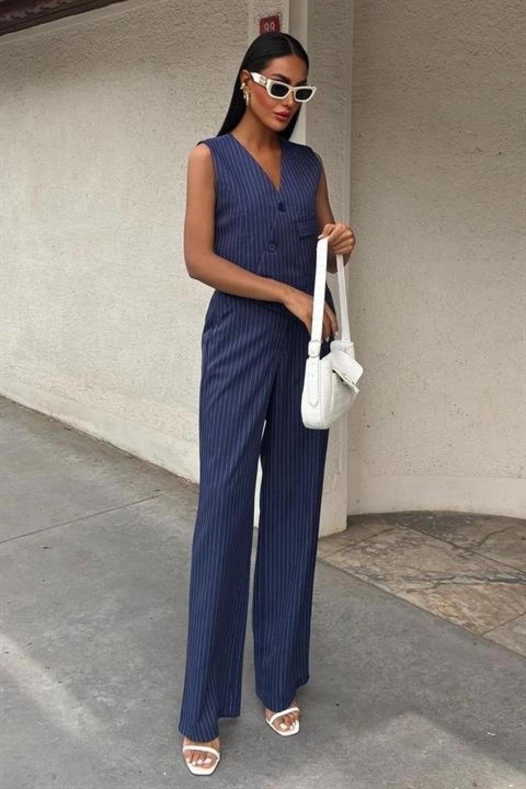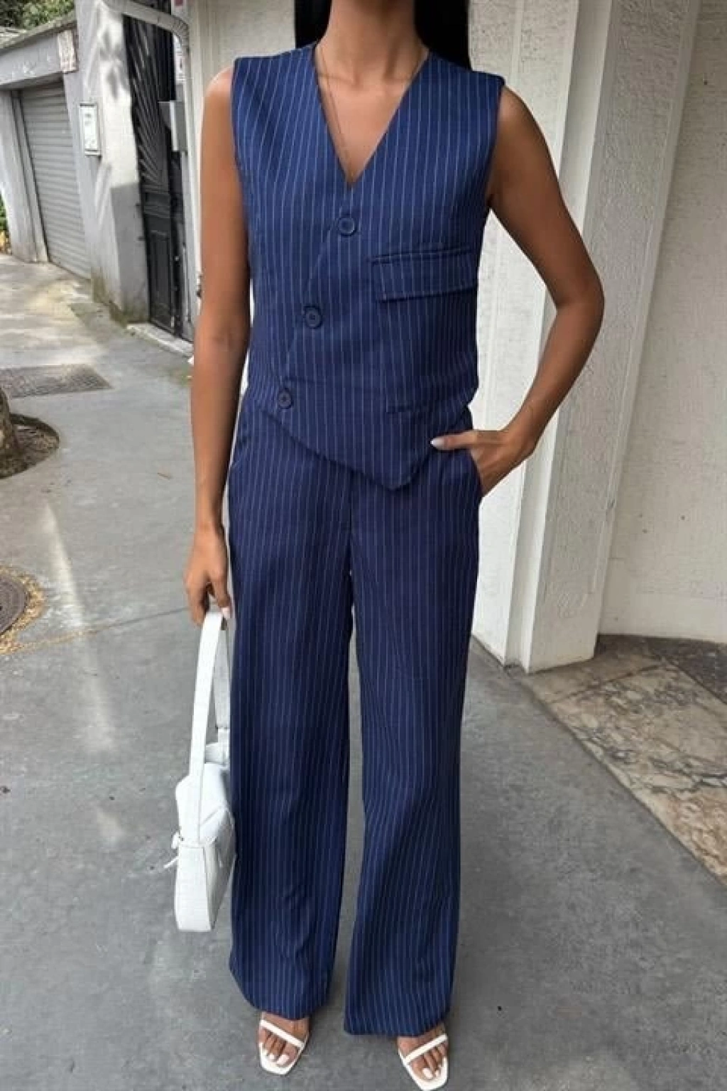 Yeleği Çapraz Detay Düğmeli Cepli Yelekli Takım 10150