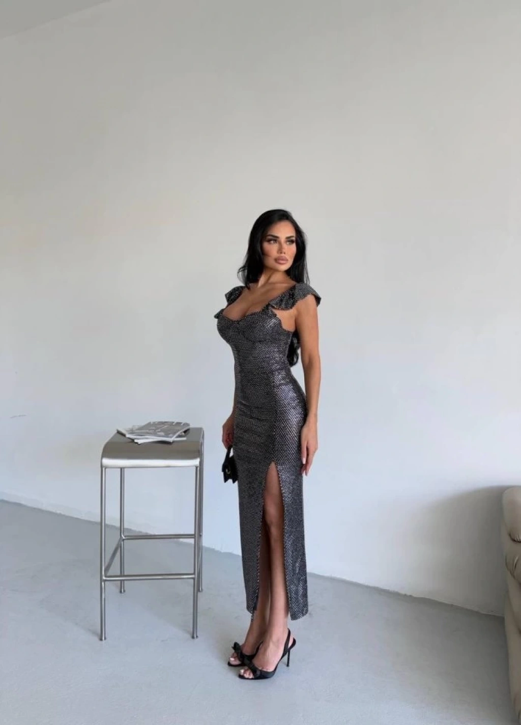 Modelin Ölçüleri: Boy:165, Kg:55, Göğüs:90, Bel:72, Kalça: 100